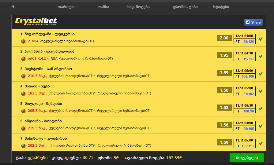 11 თამაში = 4 მოგება, 3 ფრე, 4 წაგება