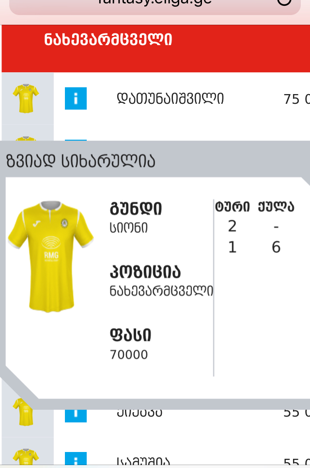 ეროვნული ლიგის ფენტეზი, 2019 წლის სეზონი