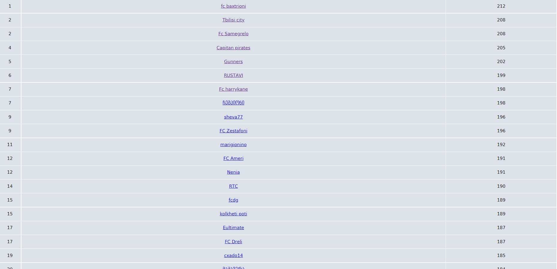 ეროვნული ლიგის ფენტეზი, 2019 წლის სეზონი