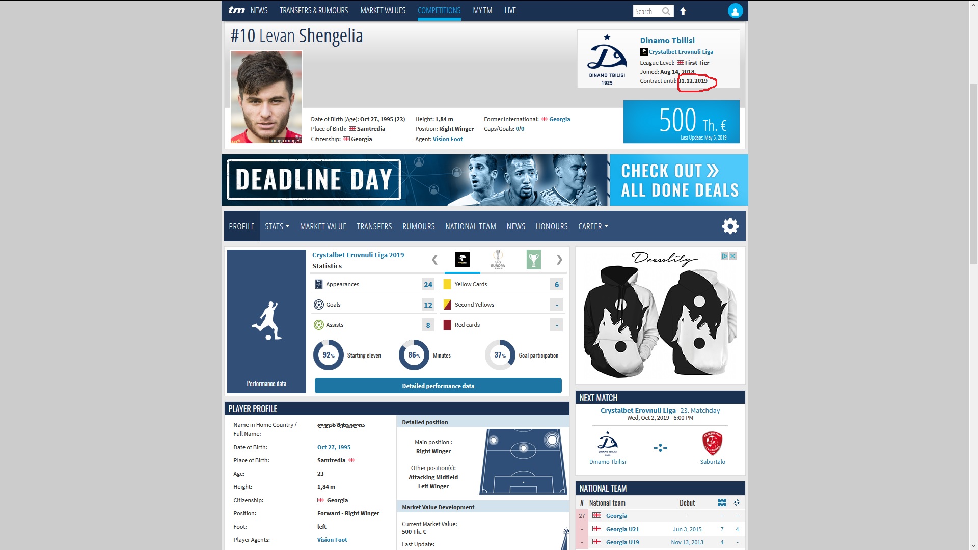 ასევე უფასოდ დეპოიტრი, რომელიც ყველაზე მაღალი კლასის ფეხბურთელია გუნდში (ჩაკვეს დაბრუნებამდე