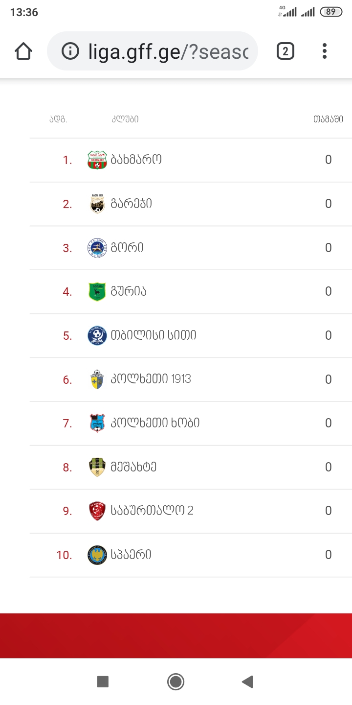 კრისტალბეთ ეროვნული ლიგა, საქართველოს საფეხბორთო 32-ე ჩემპიონატი