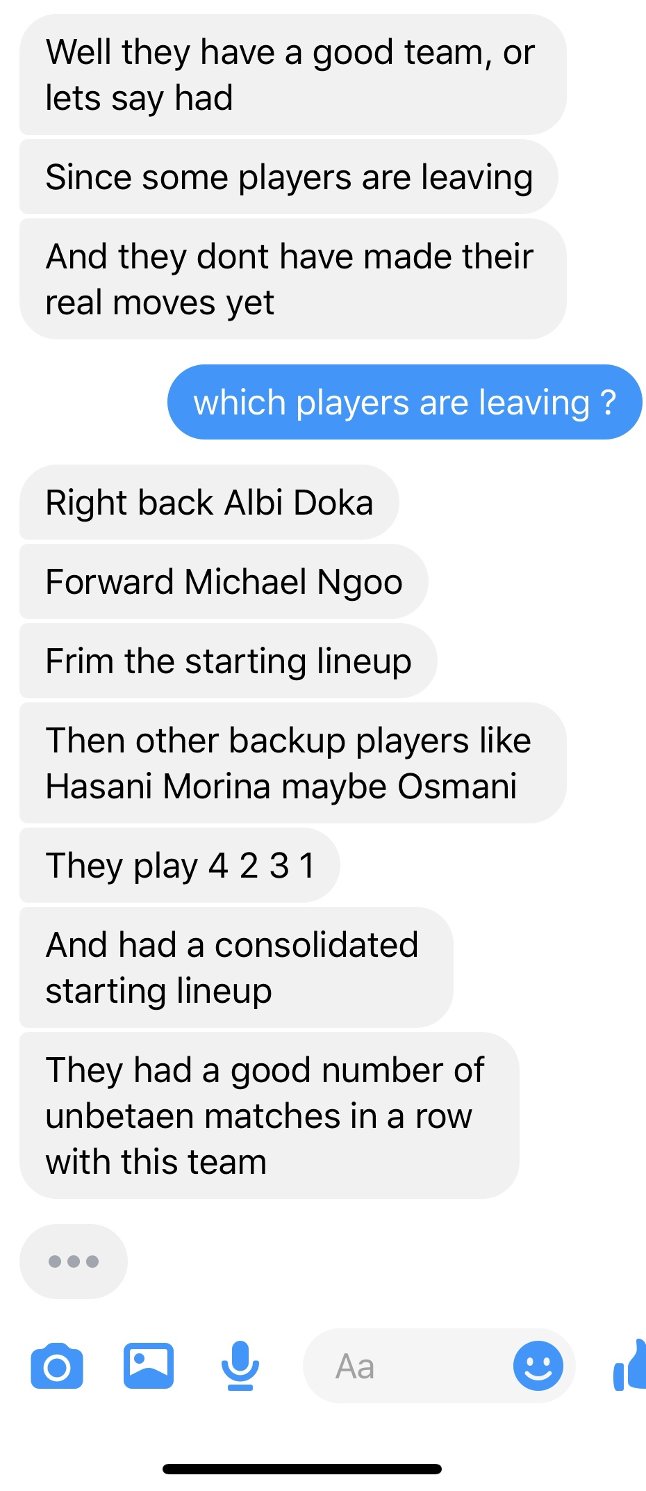 ტირანაზე ერთი ის ვიცი რომ აფრიკელი მწვრთნელი ყავთ, რომელიც მანამდე მეკარეების მწვრთნელი იყო მაგ კლუბშივე :დ