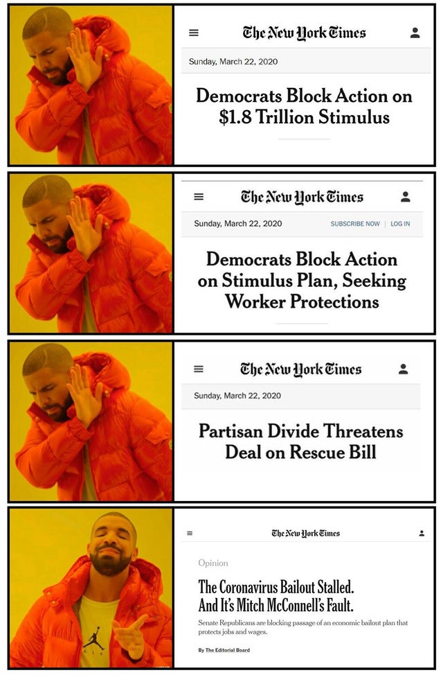 აგერ ამდენი ხანია ვუსმენ ტრამპს და არც ერთი ცუდი გადაბრუნებული სიტყვა არ უთქვამს დემოკრატებზე ვირუსის დროს. აბა გადახედე იმათი მხრიდან?