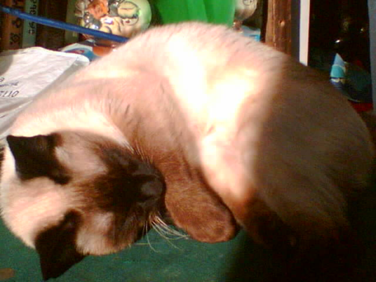 არადა აფანატებს ჩემზე.მარა დამპალი კატაა.სულ მკბენს,მკაწრავს.მოფერებას ასე გამოხატავს.ძაან ველურია.დიდი რო იქნება ასეთი დარეჩება ხასიათი ნეტა?