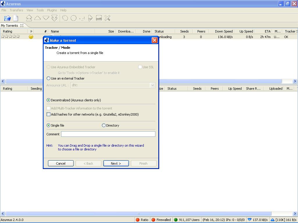 აზერუსით შედიხართ მენიუში File>New Torrent.