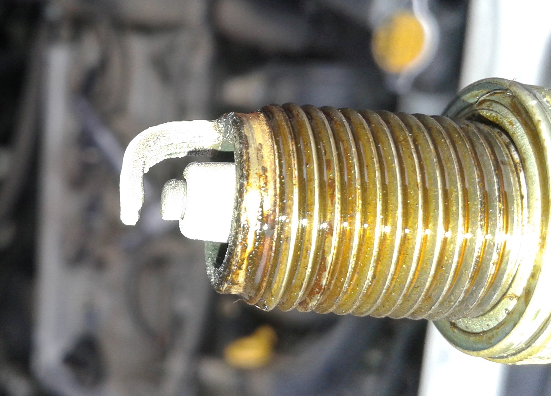 Фото № 8 - последнее в этом обзоре. Электрод свечи оброс зольными отложениями, цвет не играет решающей роли, он лишь свидетельствует о работе топливной системы. Причина этого нароста - сгорание масла вследствие выработки или залегания маслосъемных поршневых колец. У двигателя повышенный расход масла, при перегазовках из выхлопной трубы сильное синее дымление, запах выхлопа похож на мотоциклетный