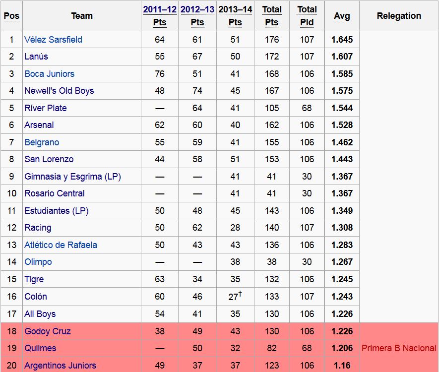 ასევე ითვლება ლიბერტადორესზე გასასვლელი გუნდებიც ოღონ მარტო 1 წლის შედეგი და ისი8ც შემდეგ წელს. 2015-ში ორივე ჩემპიონი + თასის მფლობელი და 2 საუკეთესო ეხლა რო დაჯამდება შემოდგომა-გაზაფხულის ქულები გადიან ლიბერტადორესზე