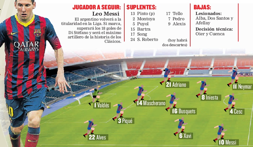 ბარსას მხრიდან კლასიკოში საჯარიომ დარტყმებით გაუტანიათ: რონალდინიოს, ლანდაბურუს, სეზარს, კუბალას, რეშაკს, გოიკოეჩეას და ნადალს - თითო. მესი-კუმანს 2