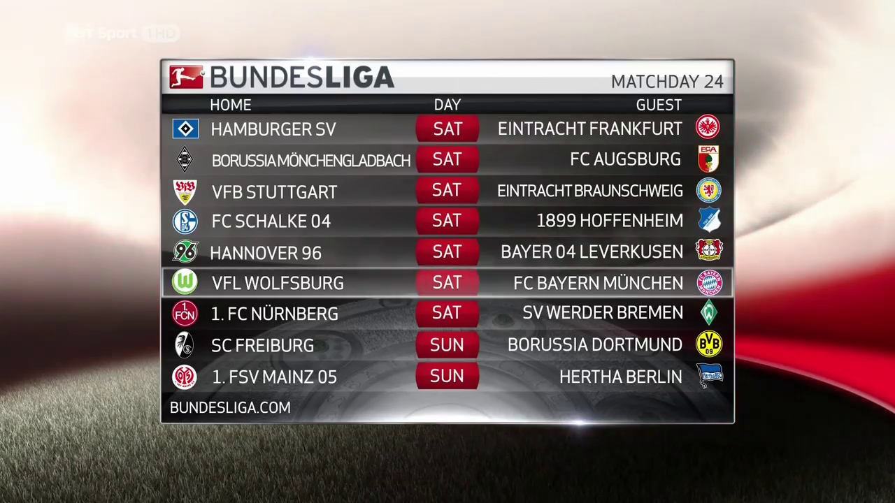 Bundesliga Sportschau - Matchday 24 - 08/03/2014მე-3 ლიგის, მე-2 და 1-ლი ბუნდესლიგის შაბათის მატჩების ხანგრძლივი მიმოხილვა და ა.შ. უმაღლესი ხარისხით (HDTV 720p)