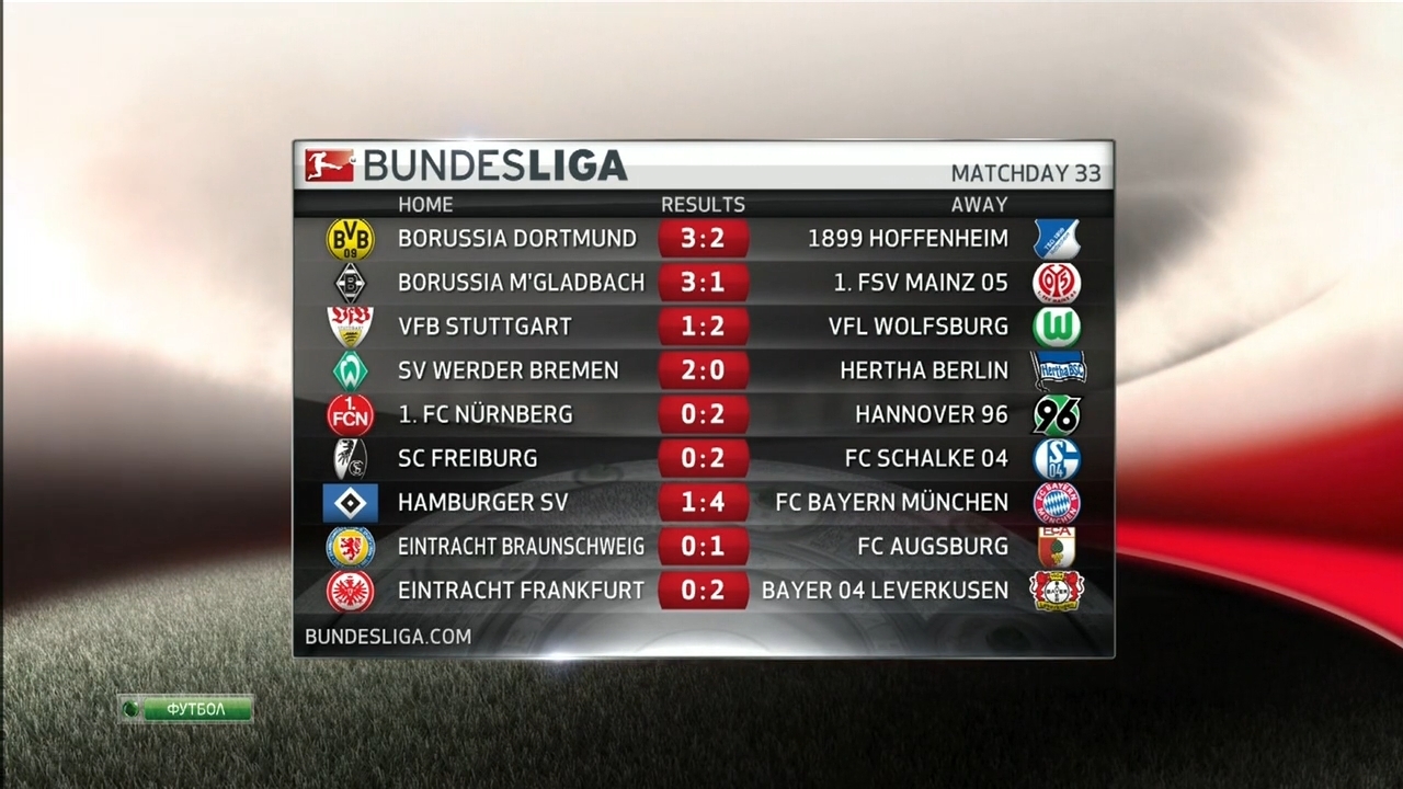 ARD Sportschau - Bundesliga Spieltag 33 - 03/05/2014III ლიგა, I ბუნდესლიგა, ყველა მატჩის ხანგრძლივი მიმოხილვა და ა.შ. უმაღლესი ხარისხით (HDTV 720p)