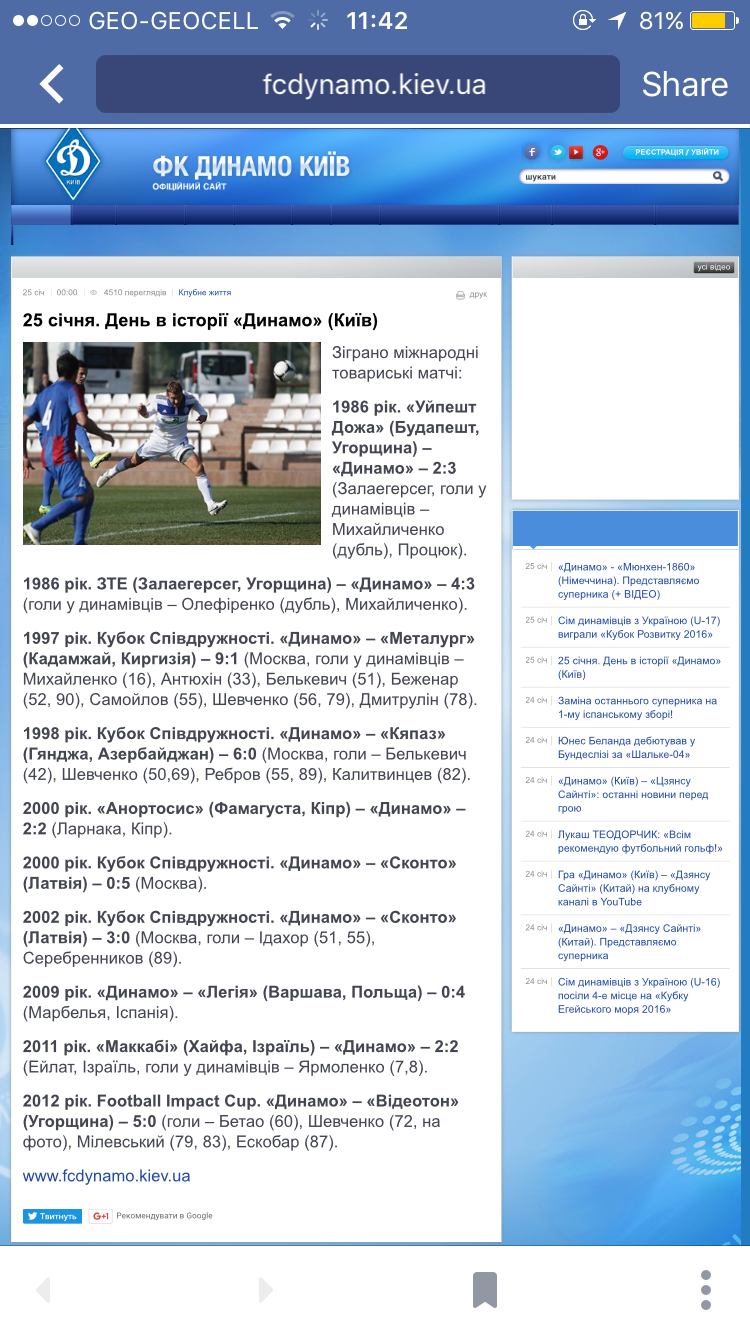 ■ 4 октября. «ДИНАМО» Киев – ЦСКА Москва 4:0 (Медвидь, 47, Сабо, 71, Бышовец, 73, 90)