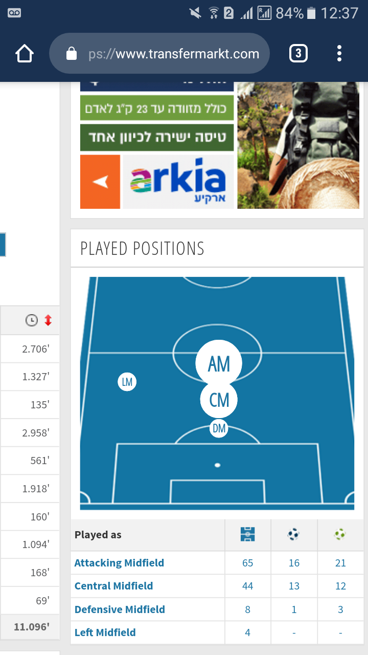 რაოდენობრიბად მერე ითამაშა ცენტრალური ნახევაცველის პოზიციაზეთქო