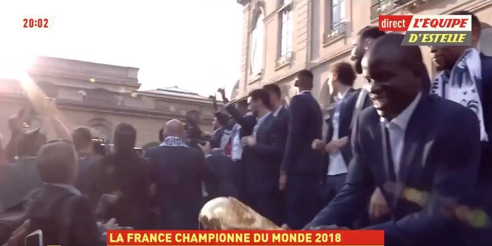 Канте даёт болельщикам прикоснуться к Кубку Чемпионата Мира.