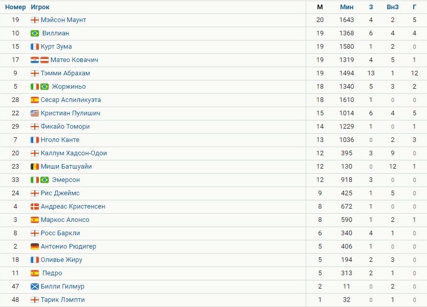 ქვემოთ მივააგებ სურათს ჩატარებული წუთების მიხედვით ამ სეზონში