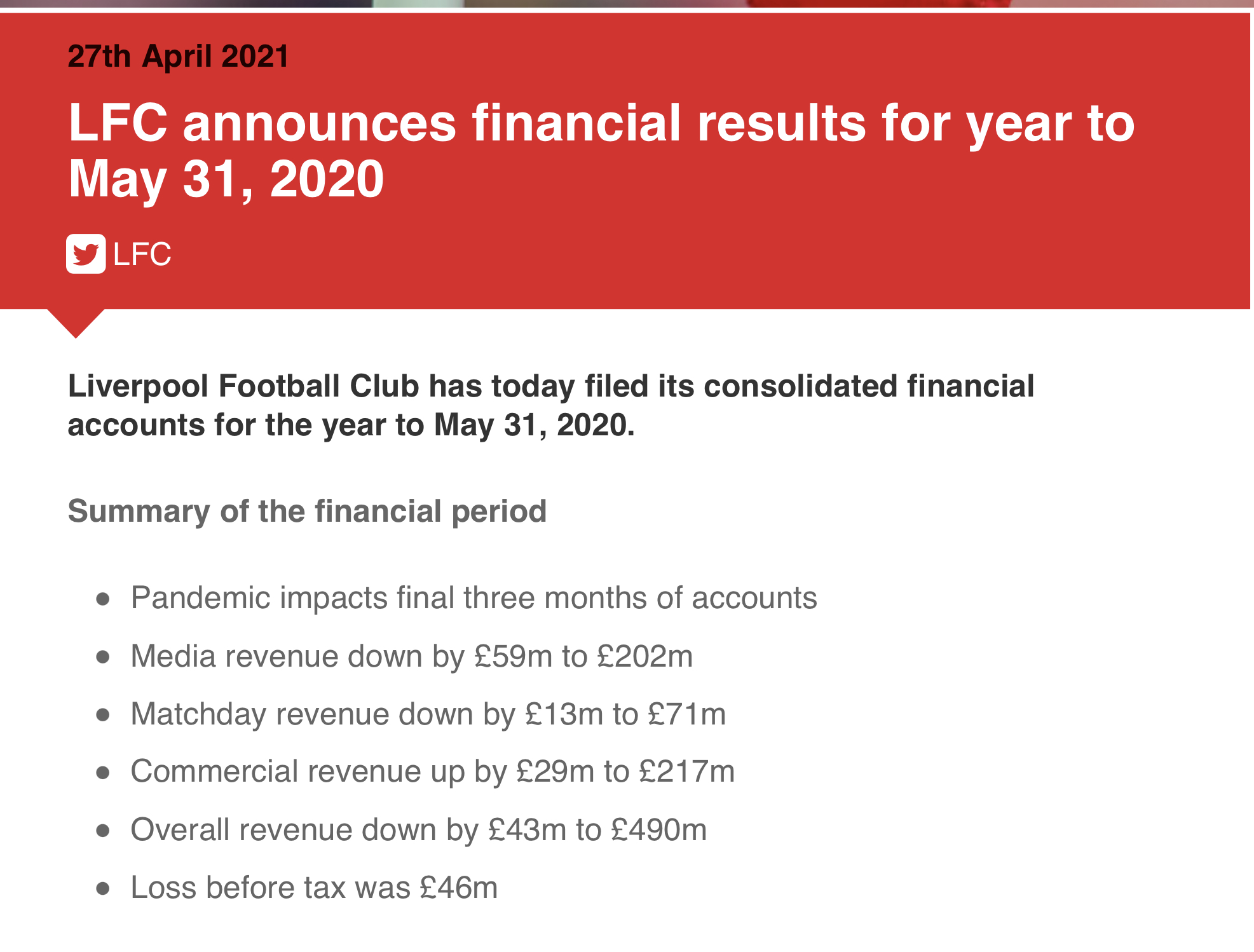 LIVERPOOL FOOTBALL CLUB, Back in Business with VVD