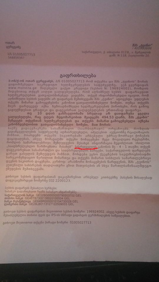 სესხად აღებული თანხა აუცილებლად უნდა დააბრნდეს, მაგრამ ეს "ტვინოები" ოფიციალურ წერილში შეცდომებს არ უნდა უშვებდნენ