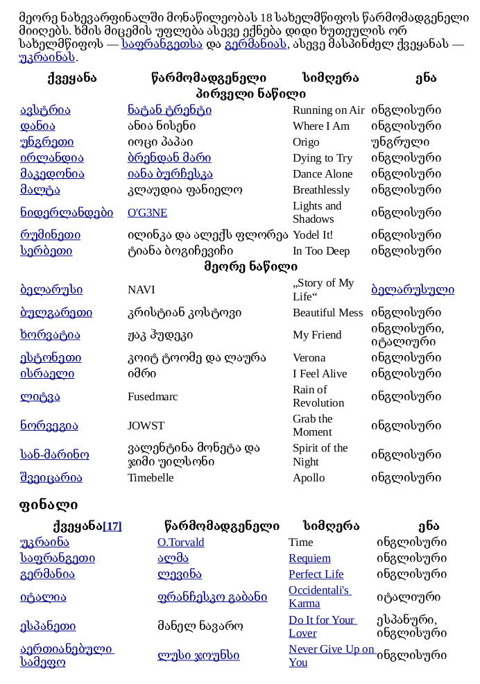 ევროვიზია 2017, ევროვიზიის შესარჩევი ტური 2017