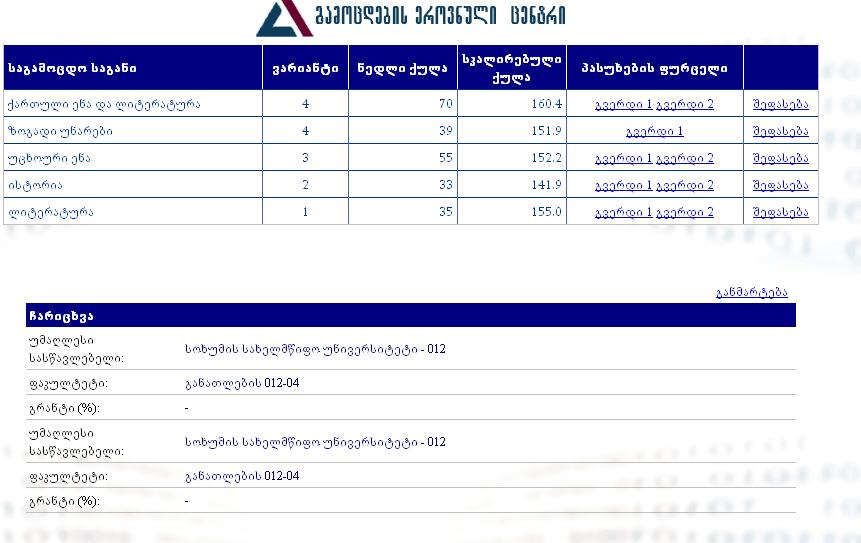 ერთიანი ეროვნული გამოცდები 2010 - XX