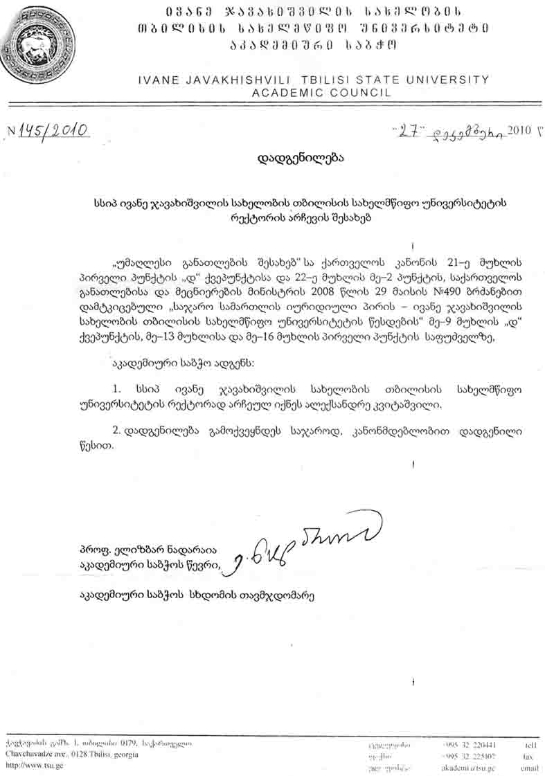 სახელმწიფო უნივერსიტეტისატვის ბრძოლა გრძელდება, კვიტაშვილი რექტორი არ არის