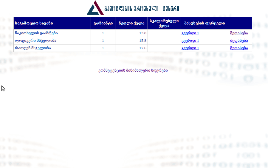 საერთო სამაგისტრო გამოცდები 2011, შედეგები