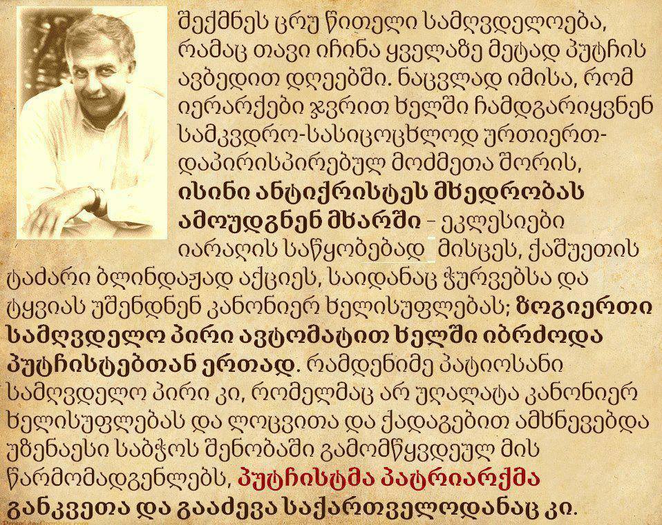 ვაცხადებთ პროტესტს გაიოზის კურთხევის წინააღმდეგ და მოვითხოვთ მის გაკრეჭას და განკვეთას როგორც უღირსი სამღვდელო პირისას.