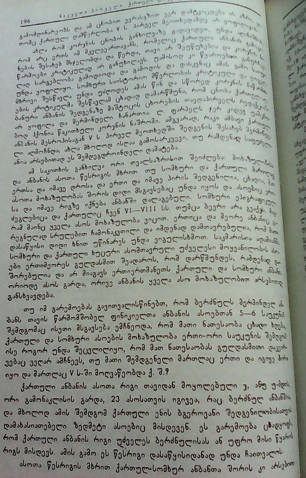 ვახტანგის ამბავი ჩამატებად მიგაჩნია მოტივის გარეშე და კორინიუს ტექტსი არ გეჩვენება ჩამატებად? მაშინ როდესაც იმავე პერიოდის ისტორიკოსებად მიჩენული კორიუნზე ბევრად სერიოზული ტიპები მაშტოცის საქმიანობას აღწერენ, საუბრობენ დამწერლობის შექმნაზე, ალბანეთისთვისაც კი, მაგრამ იბერიაზე არცერთი არაფერს წერს. მაგრამ შეაყარე კედელს ცერცვი