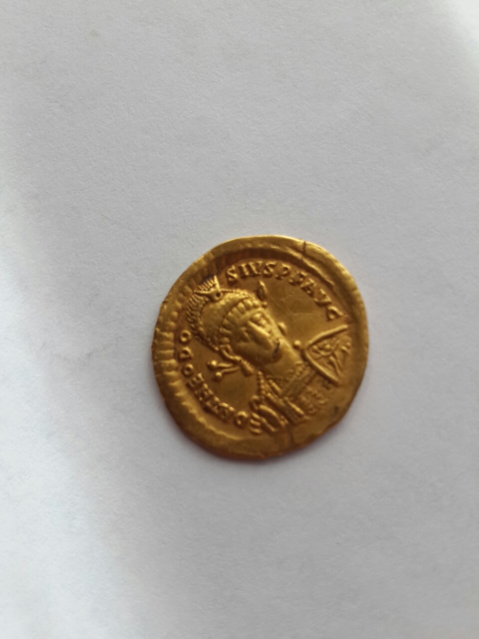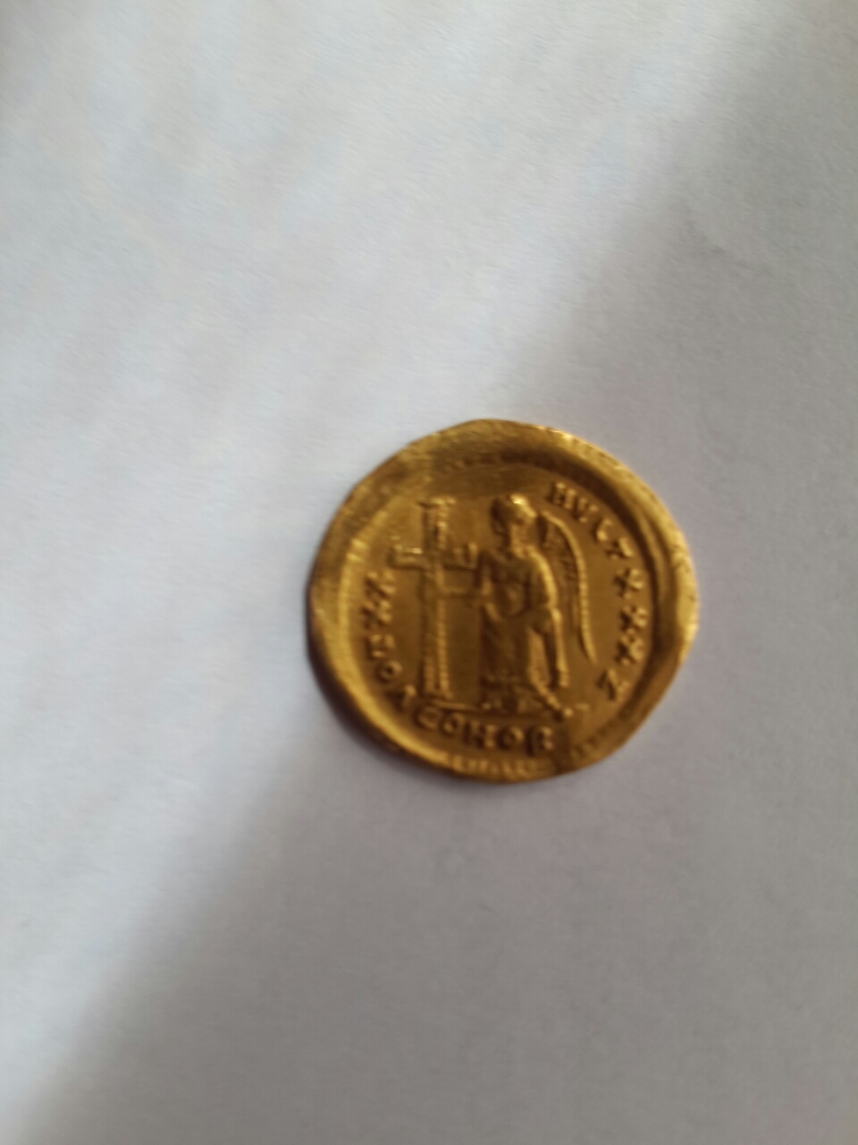 AV. მეფე იმპერატორის ინსიგნიებით. ქართული ზედწერილი: "გიორგი, ძე თამარისი. ქორონიკონი 430".