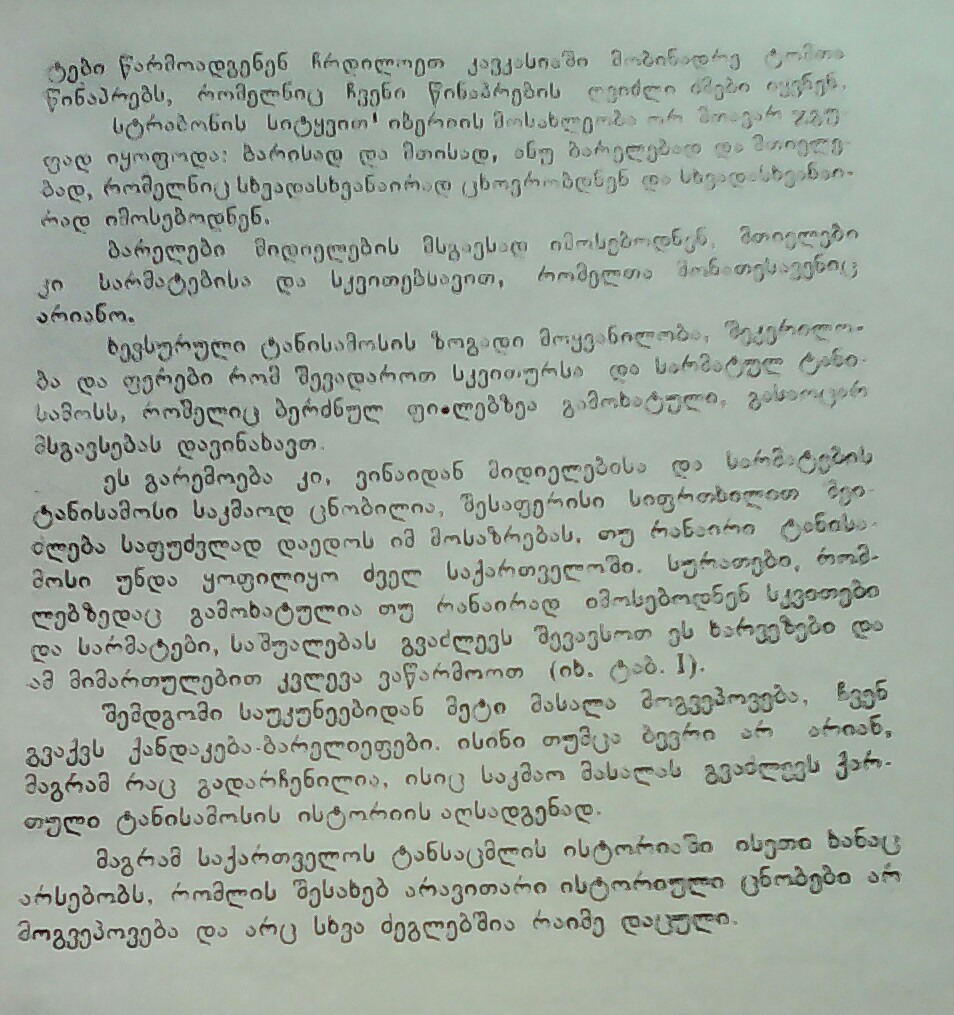 სტუმარმა თვალი მოავლო ხალიჩას რომელზეც იჯდა სპილენძის ჭურჭელს ვერცხლით გაწყობილ იარაღს ოქროს საყურეებს და მზერა მასპინძლის აბრეშუმის წითელ პერანგზე გააჩერა,გაახსენდა ტანაისელი ბერძენი ქალი სიცოცხლის შენარჩუნებას რომ ევედრებოდა,ჩიზგა გაახსენდა სახეში რომ ესროლა გასისხლიანებული პერანგი ეს დედაშენს აჩუქეო.