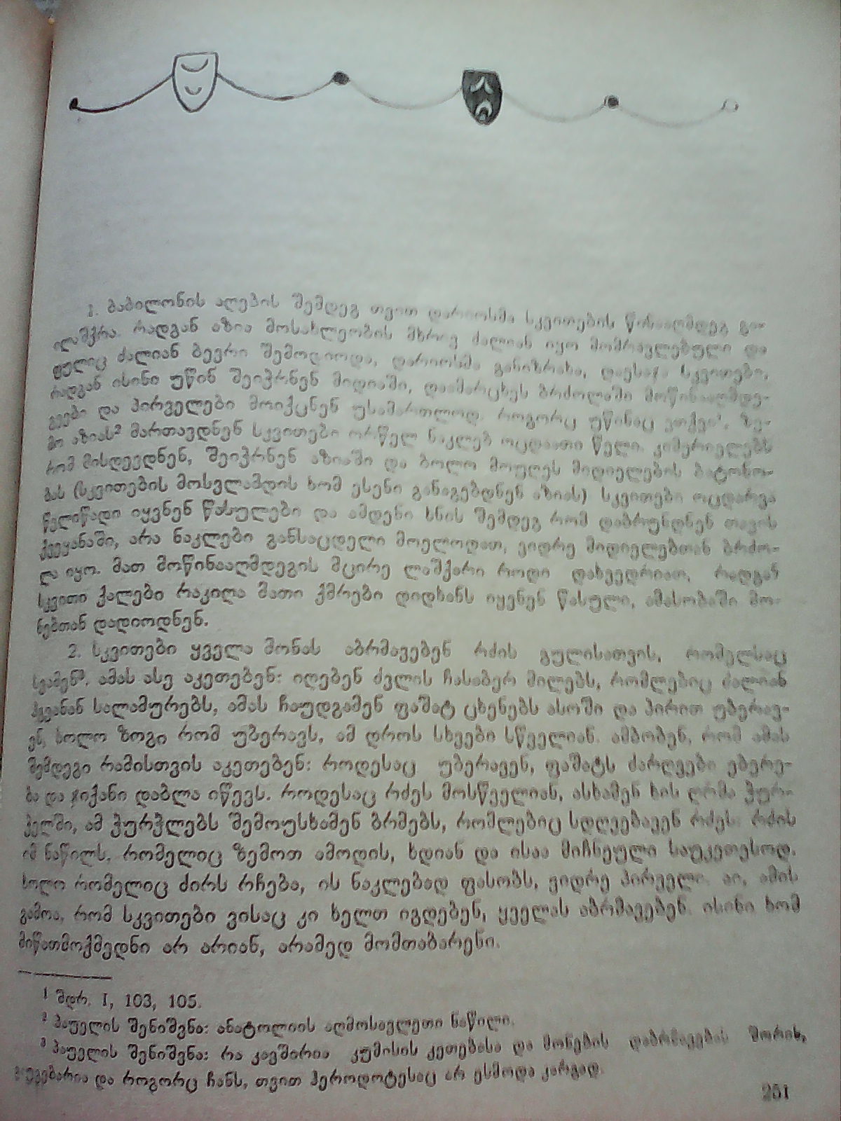 გაჭირდა ცხოვრება ძმაო მონებით ვაჭრობა დღეს ადვილი აღარაა ქაშაკები ვინც ყუბანის ველებზე ცხოვრობდა ყველანი დავყიდეთ ბოსფორში გადარჩენილები ჭაობებში და მთებში გვემალებიან ღომიჭამიები,ამ დროს ქაშაკის ისრის მიერ დაჭრილ მხარში ტკივილი გაახსენდა.