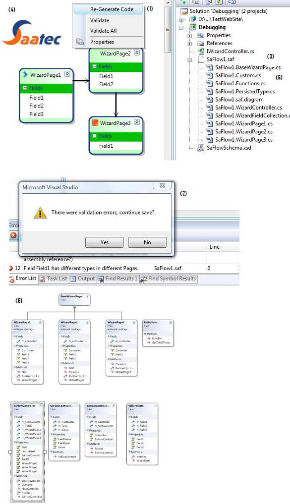 გარდა XML სტრუქტურის შიგთავსის მქონე ფაილის, გენერირდება ყველა დიაგრამაზე არსებული ელემენტების, მათ კავშირების შესაბამისი კლასები წინასწარ განსაზღვრული ფორმატით.