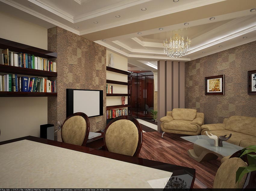 ზევით ჰალოგენებიც მიკრულ რკალებს გავს, და უკანა თაროზე ძაან სიცარიელეა. ჟურნალების მაგიდაც ძაან არაშუშაა