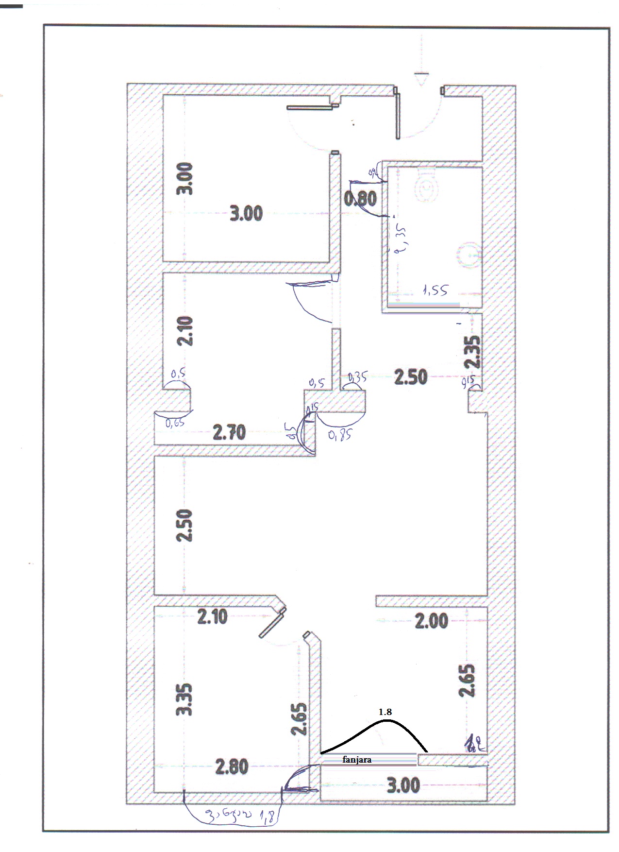 ძVელი ბინაა უნდ აგადავაკეთO, მიშენება გაკეთდა და არის ახლა ასეთი, ზომები მიწერია, ერთადერთი ტუალეტია რასაც ადგილს ვერ მოვუცვლი, და საყრდენი კედლები, მარჯვნივ და მარცხნივ 40სმ X 40სმ ზომის თითO ცალი და შუაში 40სმ X 80სმ ზომის