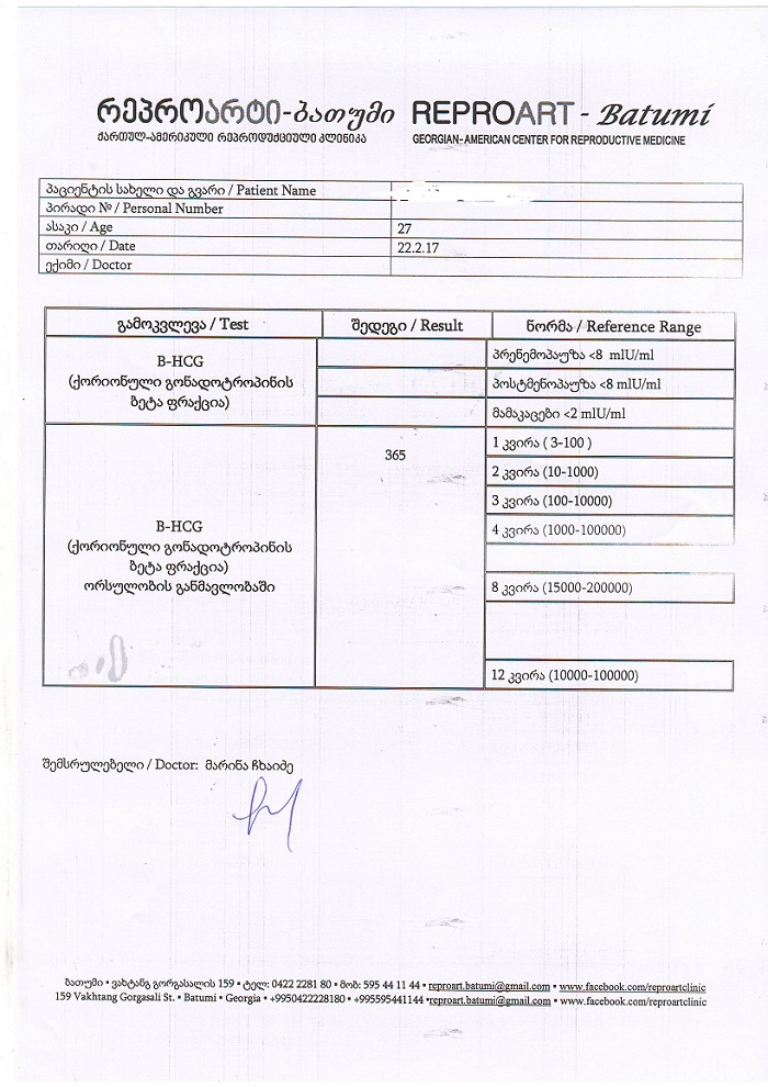 არ გამომიტანია პასუხი ტელეფონით დავრეკე ლაბორატორიაში და მითხრეს...