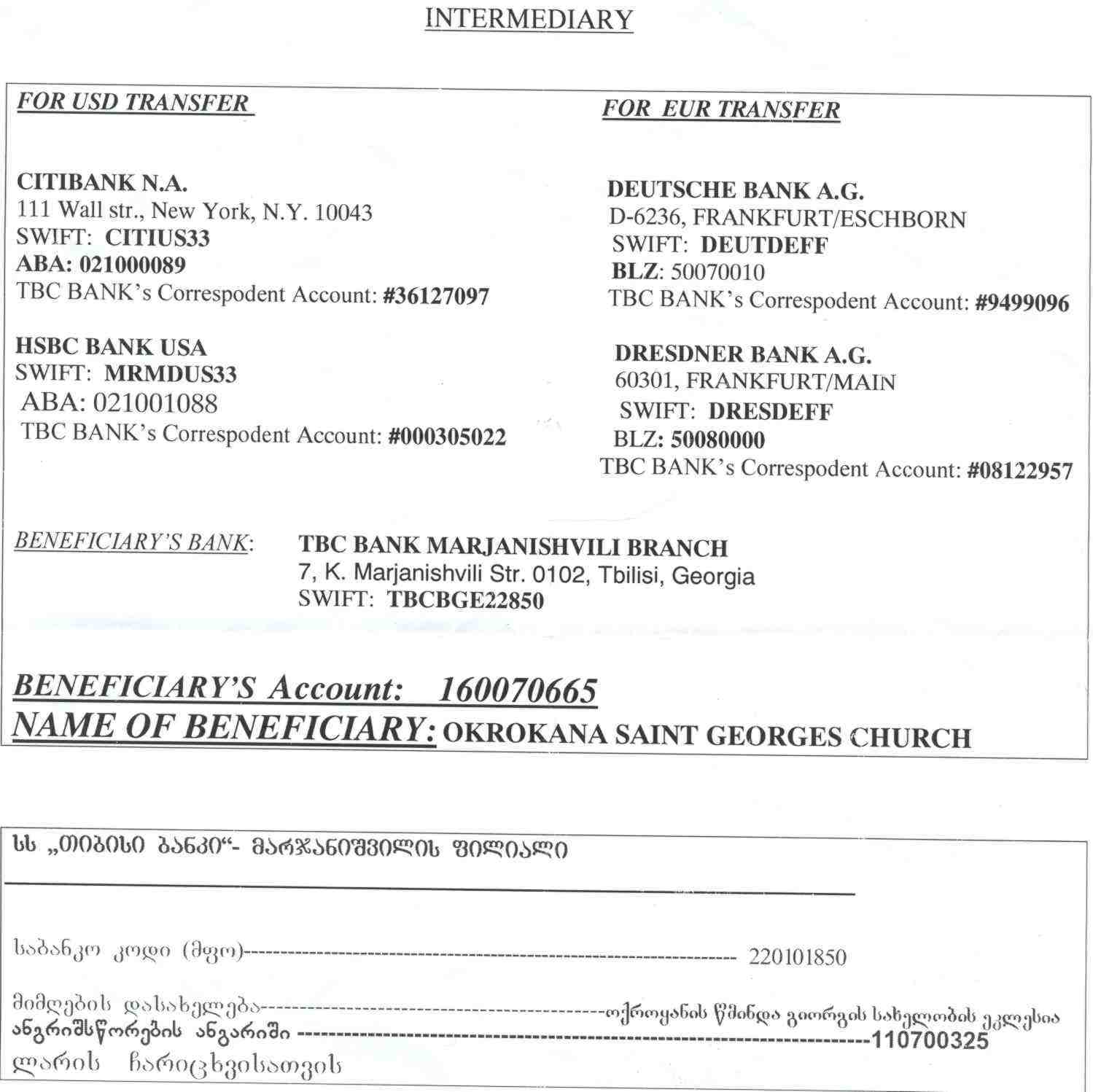 მინდა თხოვნით მოგმართოთ, სურვილისამებრ მონაწილეობა მიიღოთ "წმინდა გიორგის სახელობის" ეკლესიის მშენებლობაში.