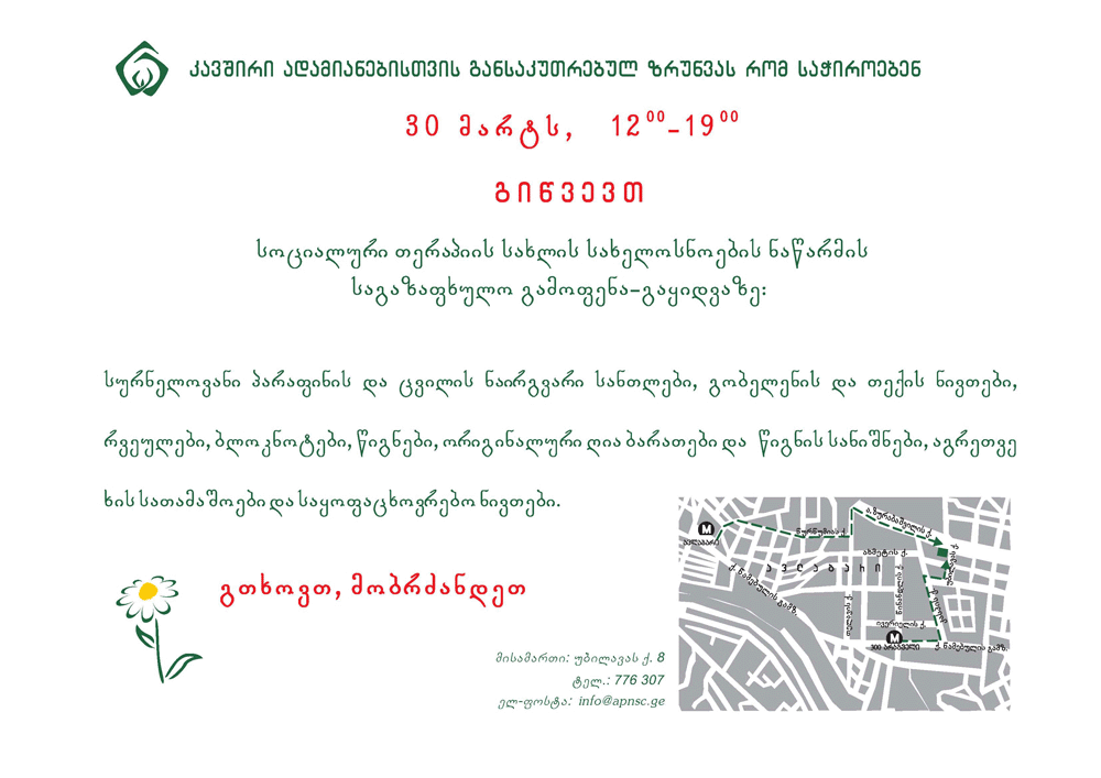 ნებისმიერ მსურველს შეუძლია მივიდეს ამ სახლში სააღდგომო გამოფენა-გაყიდვაზე, შეიძინოს მართლა ძალიან კარგი ხარისხის პროდუქცია და ხელი შეუწყოს ორგანიზაციის მუშაობას.