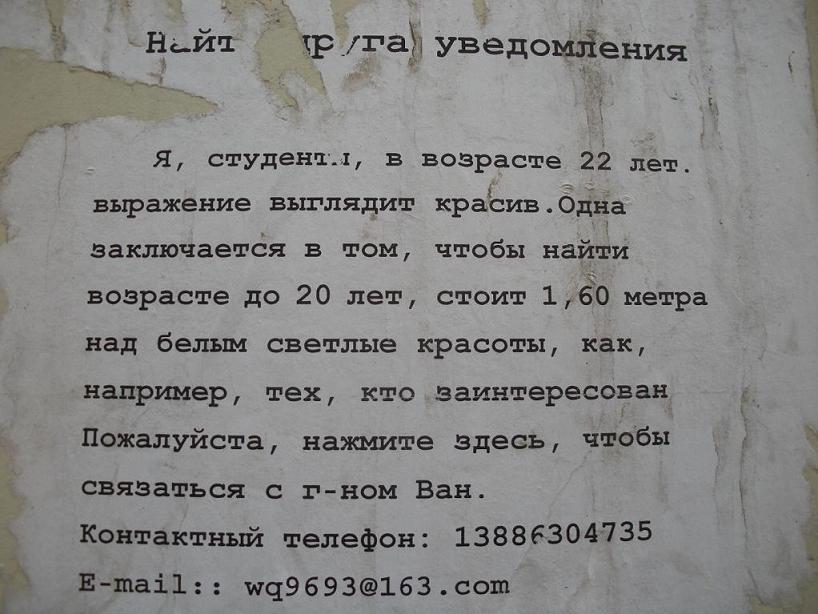 განცხადება კედელზე !, ისიც კი ვერ გავარკვიე გოგოა თუ ბიჭი.. :D