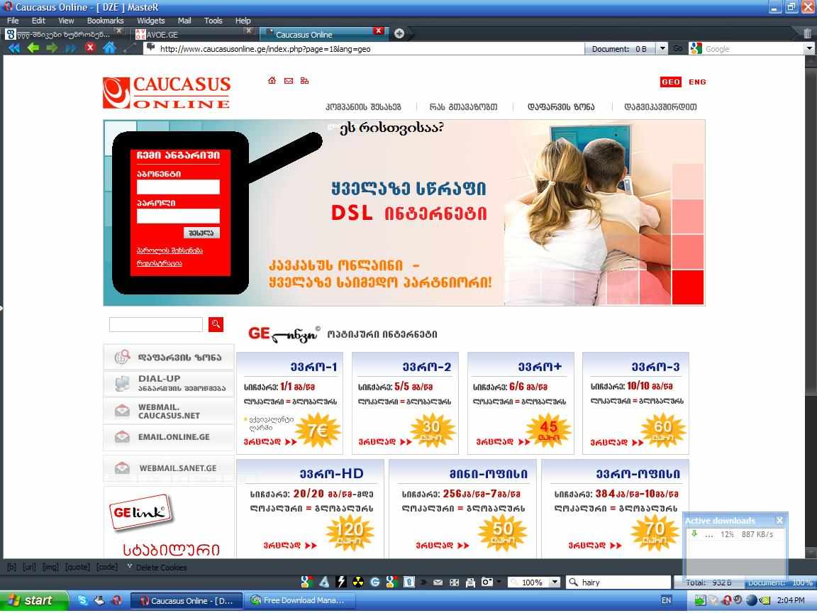 caucasusonline.ge-ზე ლოგინ პანელი რისთვისაა?