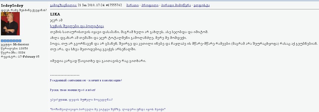 ეს არის მტკნარი სიცრუე sedoy, sedoy და აღარ ვიცი სად დაგიწერო პროტსესტი: ამ თემის ავტორს დიდი ბოდიში.
