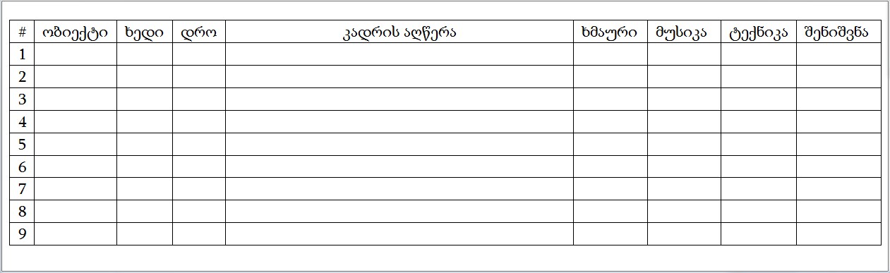 Filming, სცენარი, კამერა, მონტაჟი, საუნდი