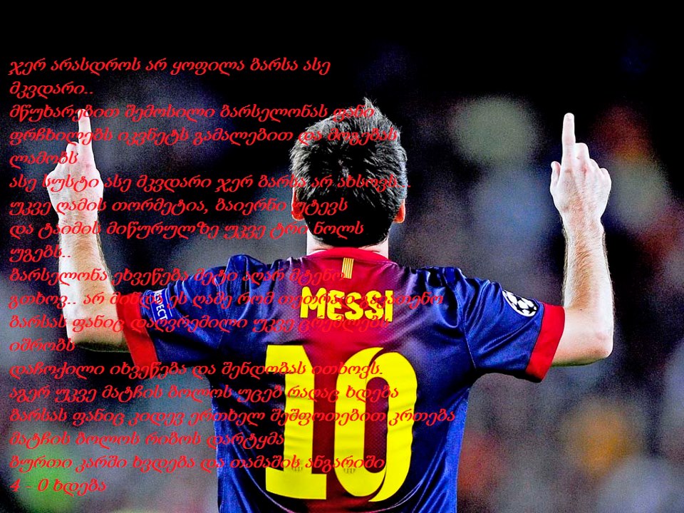 არავინ პოსტავს ეტყობა აქ სულ ბარსას ფანები იჩითებიან და არ გაუსწორდათ თემა