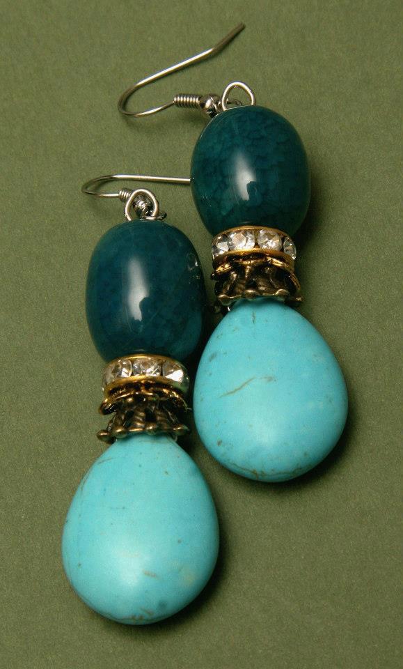 საყურე ფირუზებით და ნატურალური ქვებით 10 ლარი