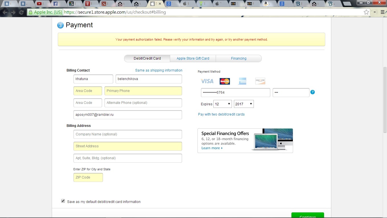 გამარჯობა, მინდა გამოვიწერო ipod-ი apple.com-დან (U2G საშუალებით). ბარათის მონაცემების შეყვანის დროს მთხოვს billing addres da billing contact-ს. გამოდის რომ ქართული ბარათით გამოწერა შეუძლებელია?