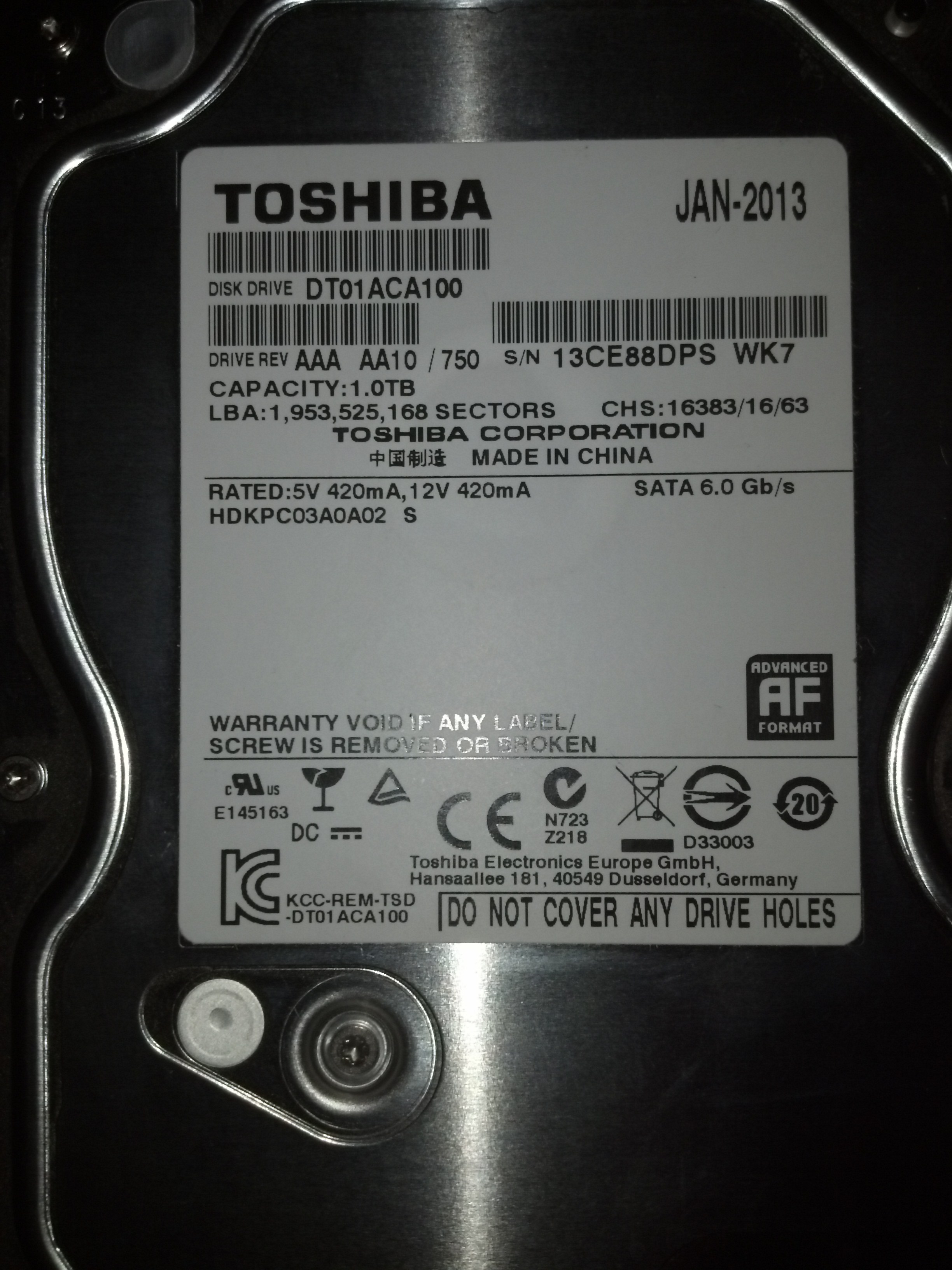 იყიდება ვინჩესტერი TOSHIBA 1TB