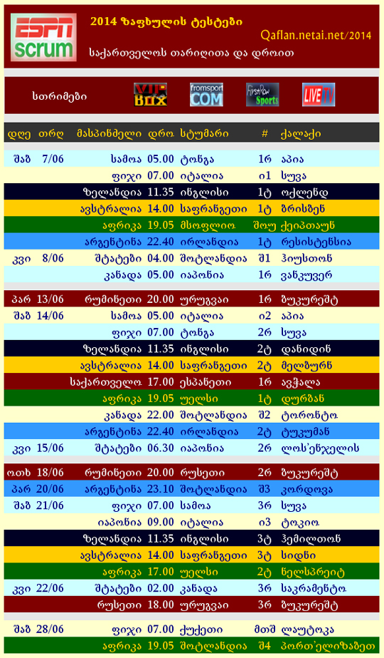 2014 ივნისის ტესტები, რას და როდის ვუყუროთ