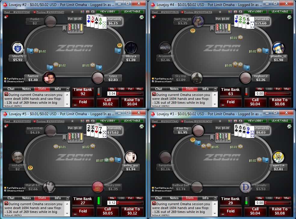 Pokerstars-ზე არსებული ყველაზე დაბალი PLO ლიმიტიდან NL1 ( 0.01 / 0.02 $ ) იდან