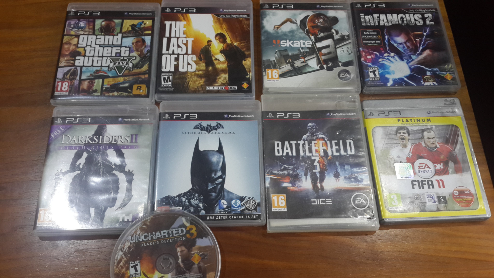 GTA 5 ,SKATE 3, infamous 2,Darksiders II,FIFA 11,The Last of Us,Uncharted 3,Battlefield 3,Batman Arkham Origins