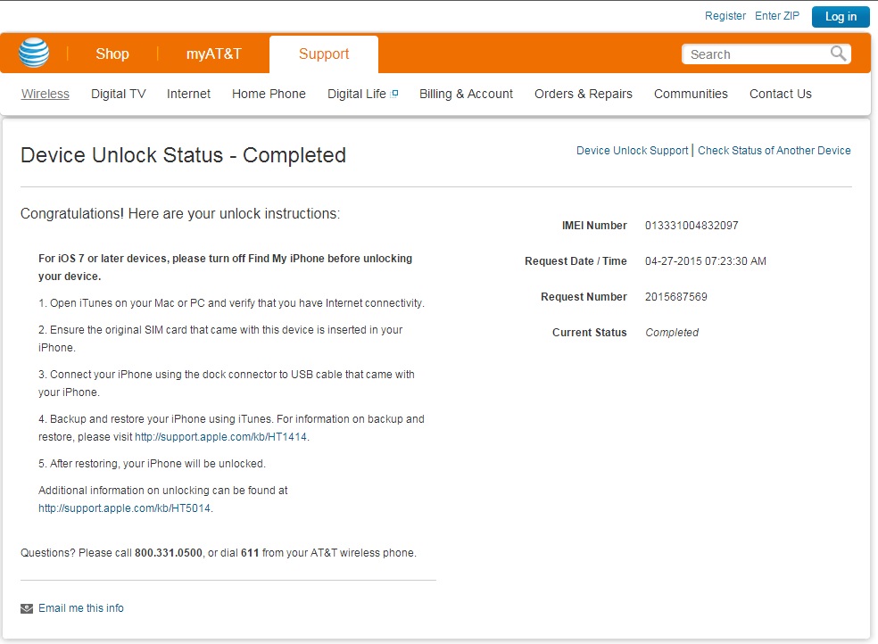 For iOS 7 or later devices, please turn off Find My iPhone before unlocking your device.