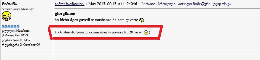 ამ ფორუმელის ტელეფონს მოგწერ PM ში ეხლა ოღონდ არვიცი ისევ აქვს ეგ ეკრანი თუ არა,,