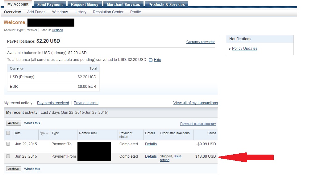 დღეს PayPal-ით პირველი დოლარები მივიღე, ყვარყვარე მიამატე სიას!