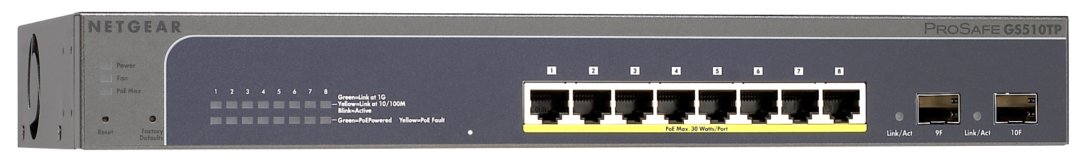 8-портовый гигабитный Smart-коммутатор ProSafe с 2 гигабитными портами SFP (GS510TP)